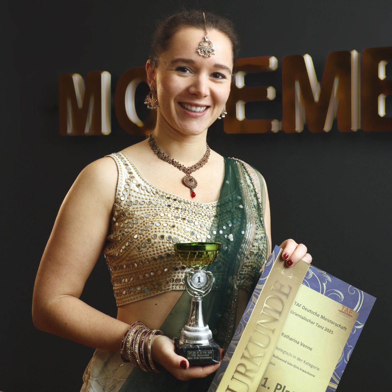 1. Platz bei der TAF Deutschen Meisterschaft im Bollywood-Tanz.